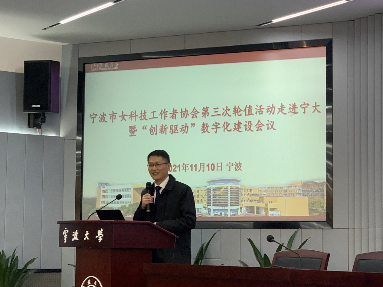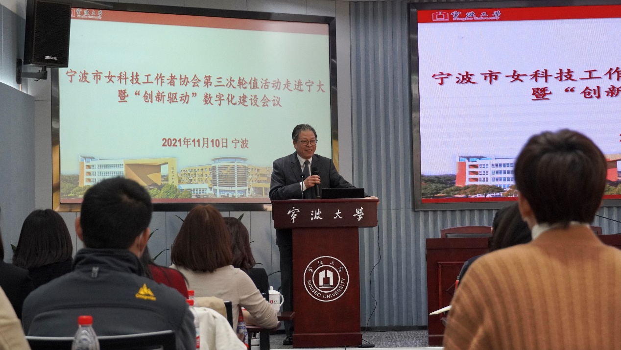 11月10日,由宁波大学承办,宁波经纬数控设备有限公司协办的宁波市女科技工作者协会第三次轮值活动走进宁大暨“创新驱动”数字化建设会议在宁波大学举行,来自宁波市多个高校、科研院所和科技公司的30余名女科技工作者参加本次会议。浙江省科协副主席武传宇、宁波市科协主席陈文辉受邀出席本次会议。