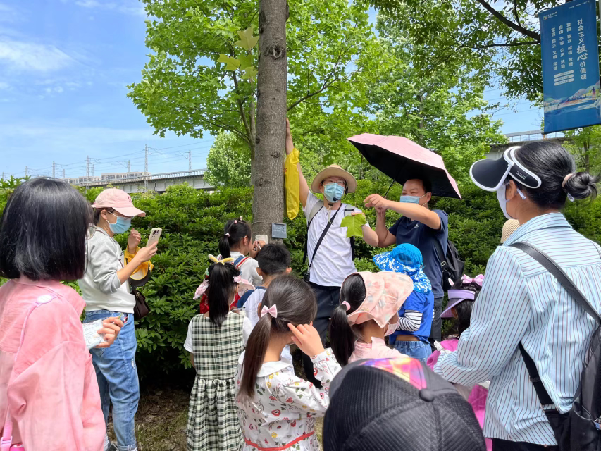 “大熊猫、丹顶鹤是国宝,因为它们很珍稀。故宫里也有许多国宝,十分珍贵,那么植物界中又有哪些‘国宝’呢?”胡老师循循善诱,逐步引导大家走近大自然,探索自然界的奥义。现场,胡老师为大家介绍了具有“地球独子”之称的普陀鹅耳枥、“鸽子树”珙桐、“马褂木”鹅掌楸、水杉、银杏、水松、银缕梅等国家保护植物,幽默风趣的讲解让孩子们对这些植物产生了浓厚的兴趣。