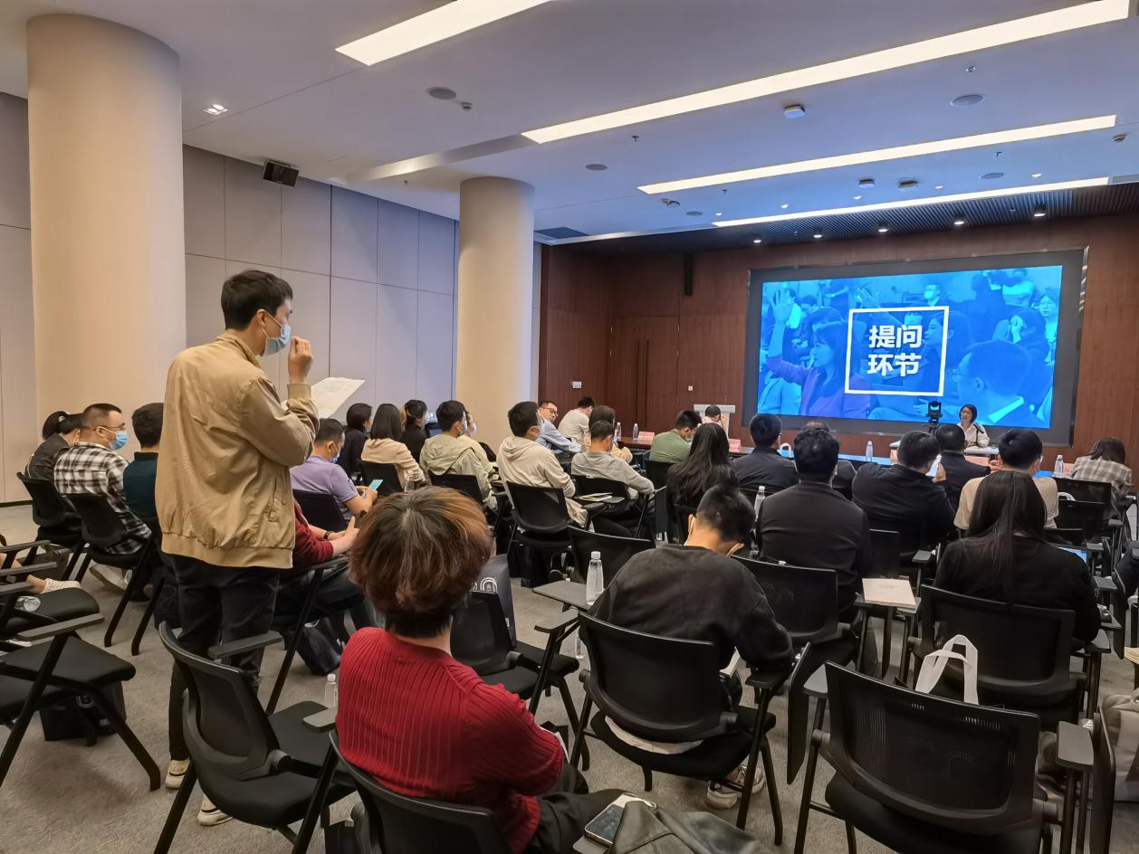 随后,浙江省专业技术人员继续教育基地运营总监就信息技术专业高级工程师任职资格评价条件和申报流程展开讲解,并针对申报过程中的困惑和难点一一进行分析。进入现场答疑环节,参会企业人员积极提问,主讲人针对现场提出的问题进行全方位解答,现场气氛十分热烈。