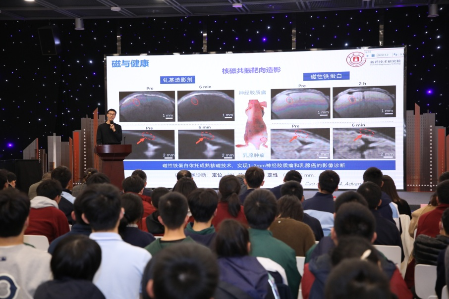 宁波大学王金辉导师《磁与生命健康》的科普报告,告诉了我们磁与生物演化密切相关,对于我们探究生命起源和进行健康保护有着重要作用。例如磁性铁蛋白能对乳腺癌进行核磁共振靶向显影,同时还能跨越血-脑屏障实现神经胶质瘤的早期诊断。