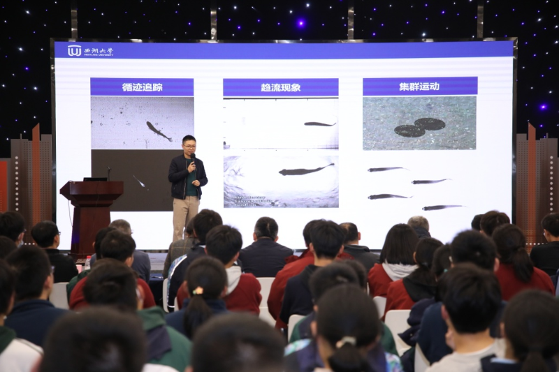 西湖大学李昂博士在《在海洋中“翱翔” 海洋仿生科技》前沿科普报告中,与大家分享了,鱼类非常善于借助旋涡,操控旋涡的现象,展开了力学机理分析研究,最终发现这一现象是为了达到节省能量,提高灵活性的效果。他们把这些理论研究成果应用到水下仿生机器人的设计和控制上,研发出了更稳定、更灵活、更安静、更精准的水下运载器。