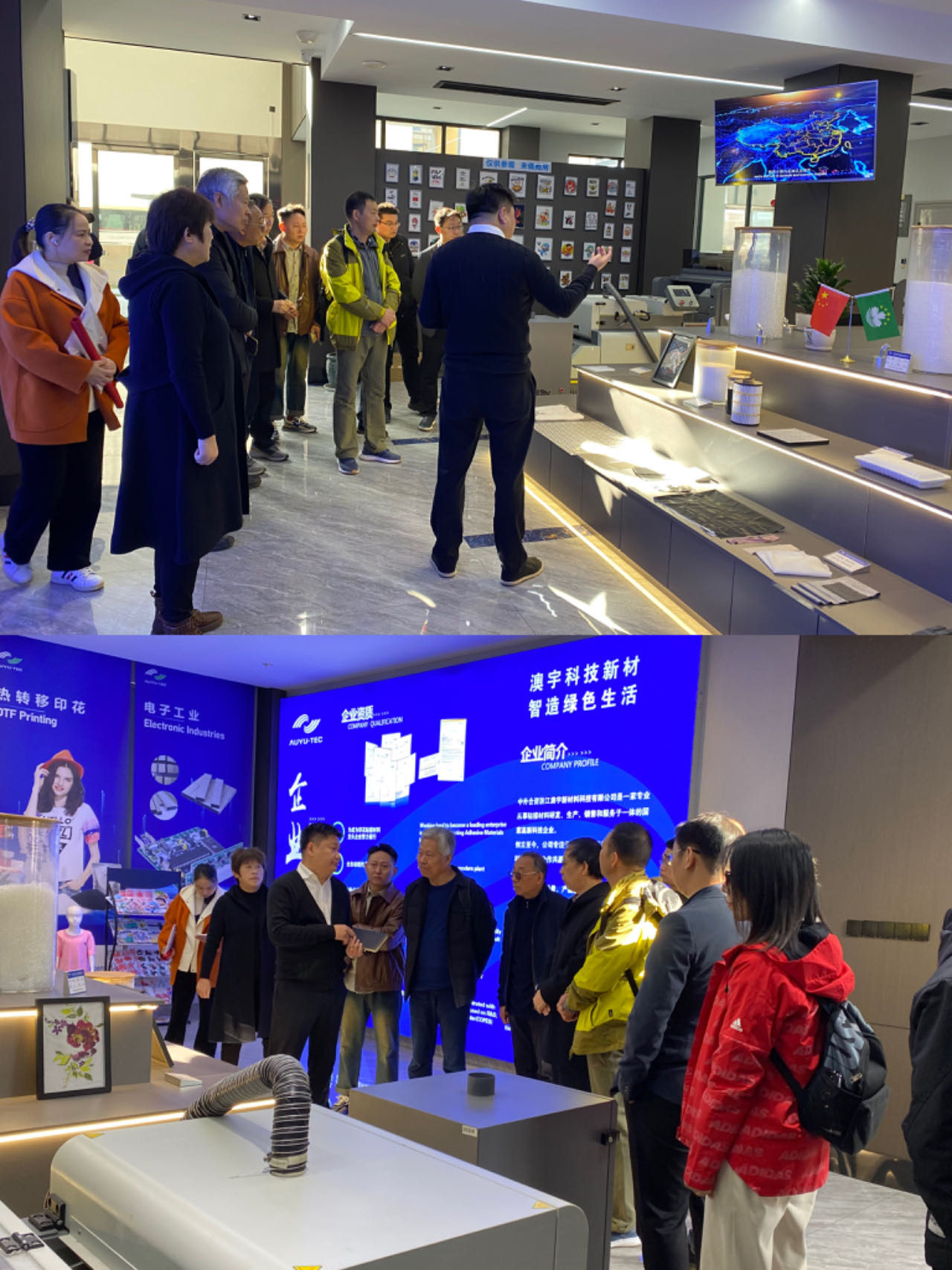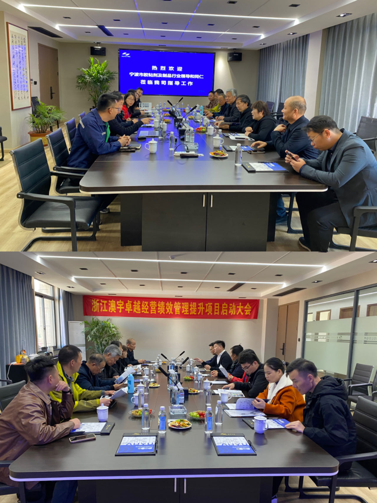 协会专家与企业家们一行受到了浙江澳宇新材料科技有限公司陈宇总经理和浙江永特胶粘剂有限公司刘仕根总经理的热情接待。座谈交流中浙江澳宇新材料科技有限公司陈总详细介绍了企业发展历程及现阶段工作思路,双方对企业产品质量提升、新厂房配置、知识产权联盟、新产品开发、市场营销等问题进行详细交流和深入解答。企业家们在交流期间互加微信,希望在自己的行业领域找到共同合作的契合点,相互可以在产品配套、产业链互补、企业精益管理、企业数字化提升、中小企业服务建设,产教融合等相关方面深入合作与交流。