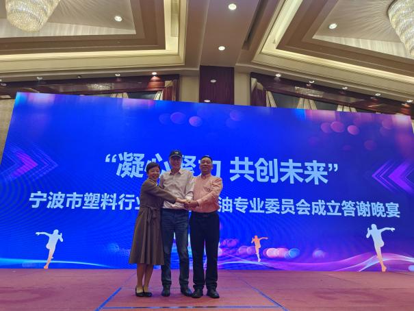 会上,宁波市塑料行业协会秘书长于卫星为第一届专委会会长林俊麒授牌并合影留念。