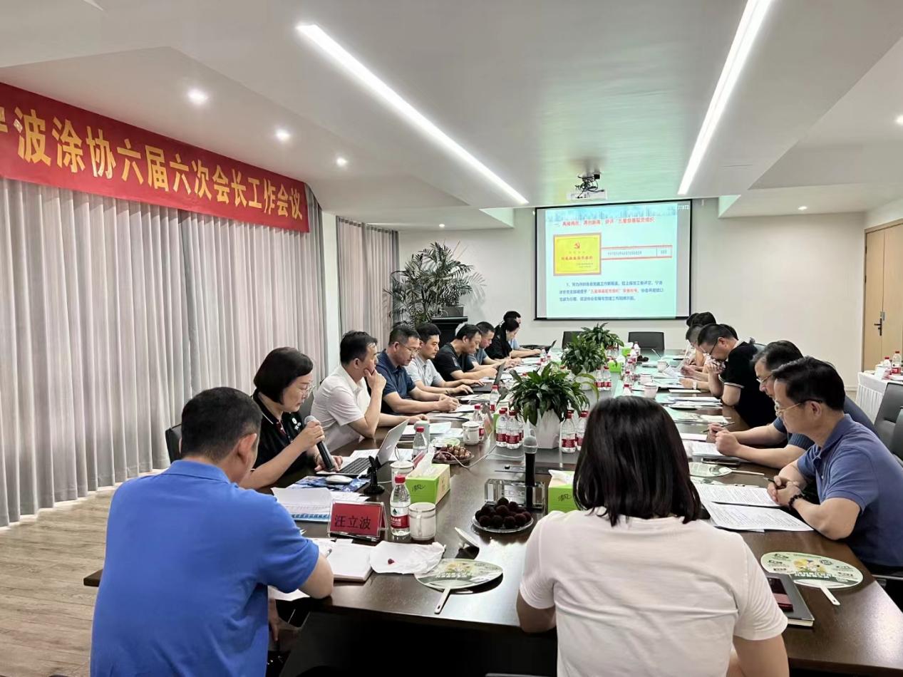 为进一步提升协会工作质量,发挥协会领导班子作用,统一思想,谋划行业发展之策,助推行业稳中求进,保持活力和韧劲,在困境中突围,6月30日下午,宁波市涂料与涂装行业协会六届六次会长工作会议在副会长单位浙江尚品飞轿制漆有限公司顺利召开,宁波涂协监事会钱兴泉监事长、徐兴龙监事和党支部代表李红良总经理列席会议,会议由吴晓明秘书长主持。