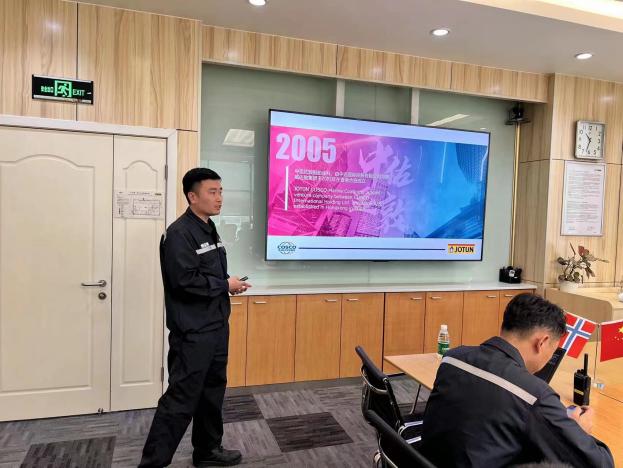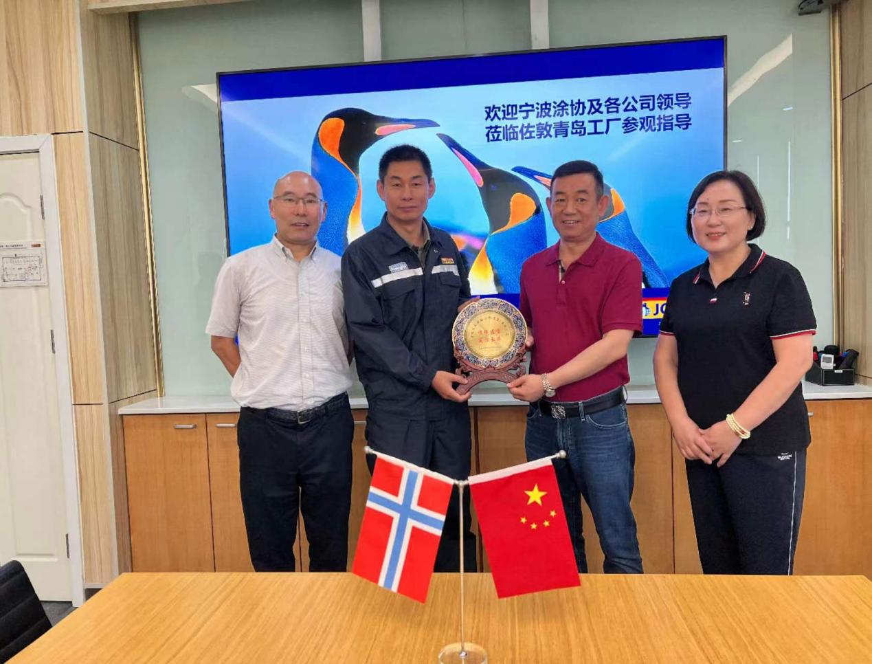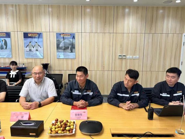 在会议室召开了交流座谈会,徐继伟总监对宁波涂协一行的莅临表示热烈欢迎,中远佐敦船舶涂料公司是佐敦集团在中国的三家子公司之一,传承了佐敦集团的“企鹅精神”,始终致力于做好船舶涂料,希望以本次活动为契机,与在座的企业家一同交流互学,共同进步。