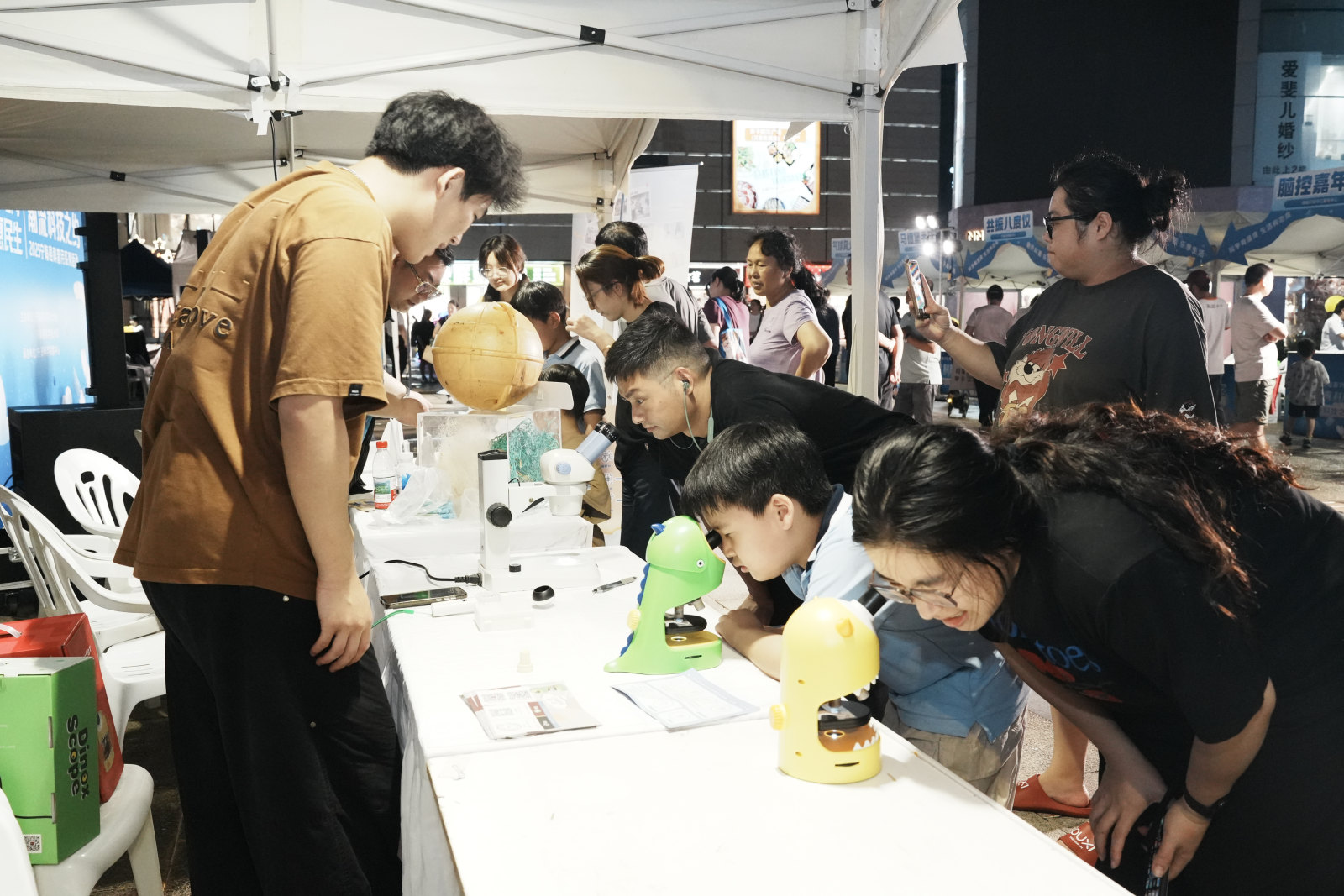 在科技体验区,来自宁波大市的优质科技企业带来了各自的“镇馆之宝”。永新光学的显微镜前,排起了好奇的长队。“我看到了!叶子里面像有很多小格子!”一名小男孩兴奋地转头向身后的父母报告他的“重大发现”,在专业人员的指导下,孩子们第一次亲眼目睹了微观世界的奇妙。