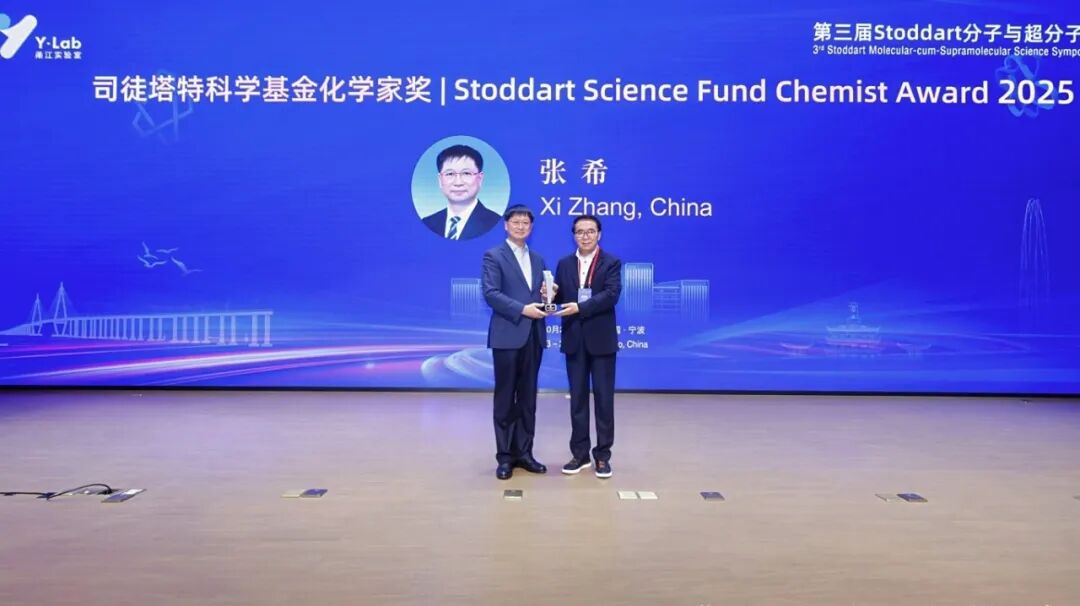 第三届Stoddart分子与超分子科学研讨会期间,举行了2025年度“Stoddart科学基金化学家奖”颁奖仪式。吉林大学校长、中国科学院院士张希凭借其在超分子化学领域的卓越贡献获此殊荣,中国科学院原院长白春礼院士为其颁奖。