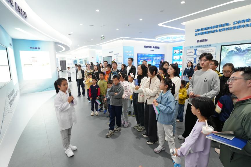 闯关互动智答区前同样热闹,一道道材料科学相关的趣味题目,让大家在欢声笑语中积累知识;新科技新前沿创新成果展上,“材料王国秘密导览团”的小讲解员们自信满满,为来宾介绍科研成果;线上直播则带领无法到场的观众“云参观”综合表面分析系统等大型科研设备,让科学探索打破时空限制。