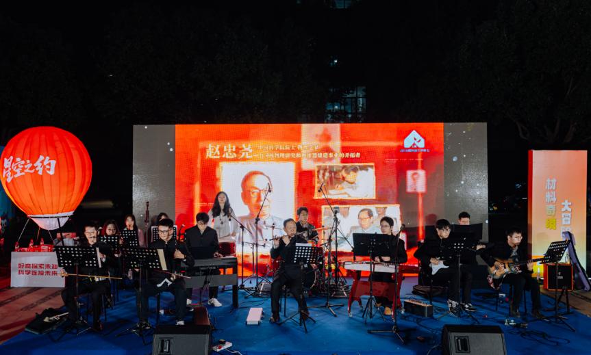 活动开场即点燃热情:宁波材料所激光极端制造研究中心主任李琳带领研究所师生组成的“爱音斯弹”乐团闪亮登场,《Victory》的激昂、《孤勇者》的热血、《鲜花》的热烈轮番奏响,用音乐为科学之夜注入灵动韵律,现场掌声与欢呼声此起彼伏。