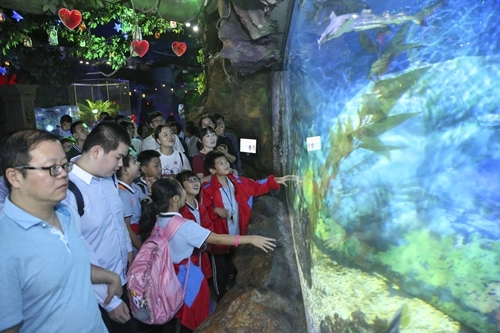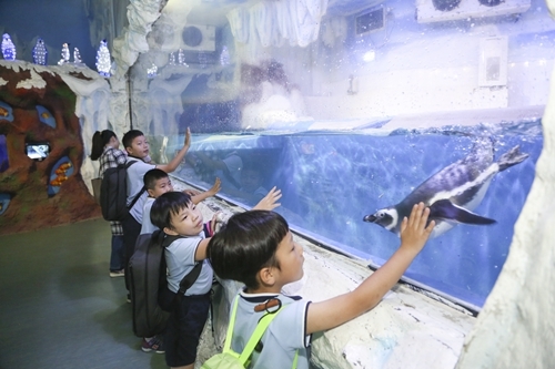 特殊儿童集体出游的机会较少,每一个孩子都对神秘奇特的海洋世界充满向往,他们也不例外。但让人印象深刻的是,特殊教育学校的同学们特别有纪律观念,近300人的大部队并没有造成现场杂乱无章的秩序,反之,每个同学都耐心地排着队,安静地听着现场讲解员的解说,歪着脑袋思考着也许他们还不是特别理解的海洋知识。满心欢喜地和海洋动物们进行一次次亲密的约会。同学们还观看了宁波海洋世界独创的全息科普大讲堂,深入了解了企鹅的习性和生长过程。
