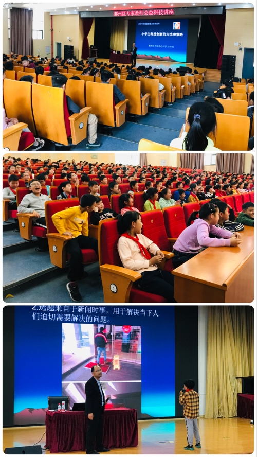 2020年11月5日下午,鄞州区实验小学教育集团南校区大报告厅里格外热闹,全校近360名四年级段学生齐聚在这里聆听汪方亮老师的科技讲座《小学生科技创新的方法和策略》。邀请专家教师科技讲座是我校作为培养学生科普素质的重要环节,也是实小第十三届校科技节的组成部分。汪老师是浙江省优秀科技辅导员、宁波市科技达人,他指导的学生已经斩获多次省市级青少年科技创新大奖,辅导学生获得国家级专利有11项,辅导各级各类科技竞赛获奖有1000多项。