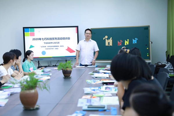 8月26日下午,下应街道中心幼儿园组织教师开展《幼儿教师智力七巧板辅导技能培训》,特邀七巧科技宁波地区总负责人汤进五先生莅临讲座,园内27名中青年幼儿教师参加了本次培训。参培教师在互动践行中,发现了许多个“没想到”,普遍认为收获满满!