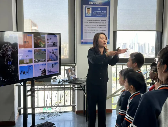 在活动现场,老师从无人机的定义、组成结构、运行机制和应用等诸多方面讲解了无人机基础知识。孩子们表现出强烈的好奇心和求知欲,学生和老师互动积极,气氛热烈。