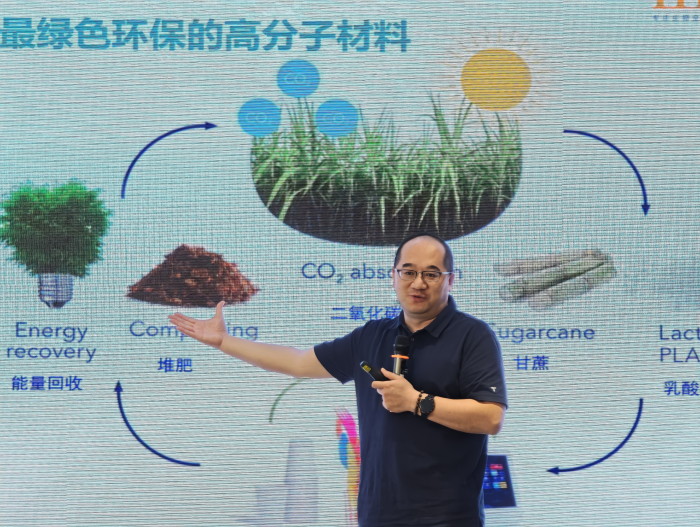 当天活动现场,来自宁波家联科技股份有限公司的市场部总监田晓锋老师给孩子们带来了《可以“吃”的塑料》主题宣讲,分享我国在降解材料领域的研究和企业通过科技创新研发绿色环保材料的故事。