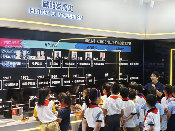 孩子们还在宁波磁性材料应用技术创新中心老师的带领下开启“青春启航 磁创未来”青少年科创主题研学,“原来磁性材料在我们生活中有这么多的应用,科学真的太神奇了,今天学到了很多新的知识。”参与本次活动的小李同学兴奋地说。