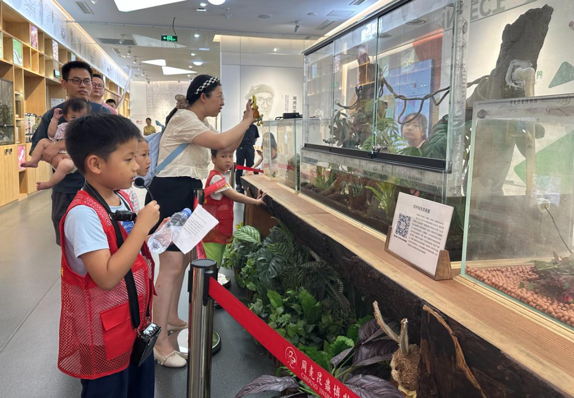 图为“泰康少年说”小主播在周尧昆虫馆博物馆开展志愿讲解服务。