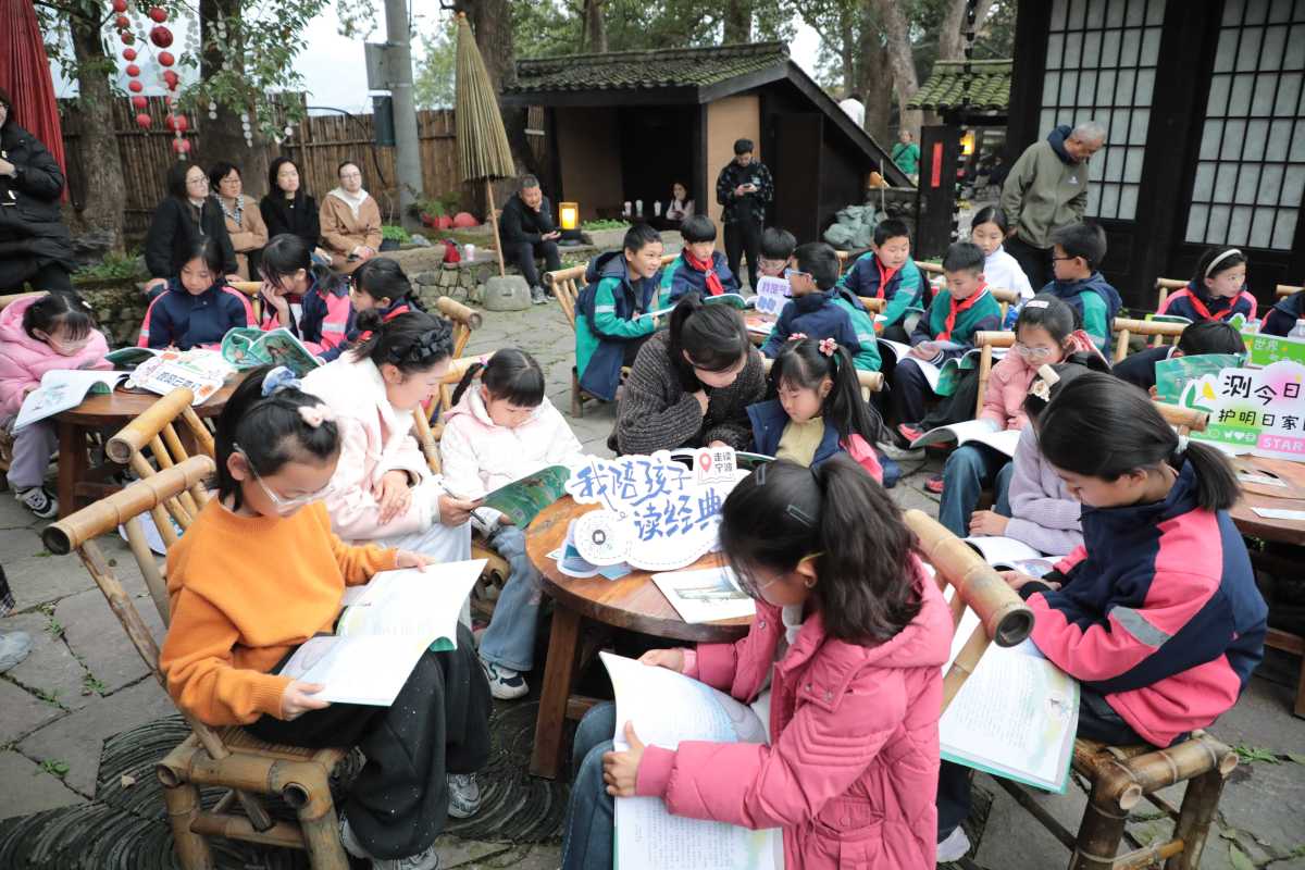 紧接着,“节气与桃乡文化主题沙龙”准时开启。“春雨惊春清谷天……每一个节气的背后,都是咱们古人观测气象、顺应天时的生存智慧。”韩光智以奉化桃乡文化为切口,将二十四节气里的气象智慧、文学意趣与乡村生活的烟火气融为一体,让孩子们感受到传统文化的深厚底蕴。