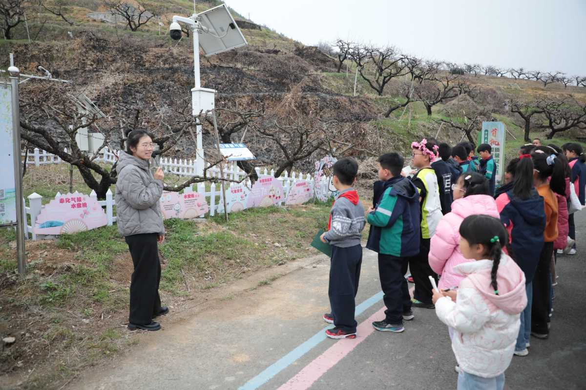 3月20日下午,在第66个“世界气象日”(3月23日)来临之际,一场别开生面的“桃韵风华・气象探秘”主题科普阅读实践活动,在奉化林家村“天下第一桃园”这片即将迎来盛花期的桃园里热闹启幕。20余名学生在作家、行业专家等人陪同下走进桃园探寻气象奥秘、阅读气象科普书籍。